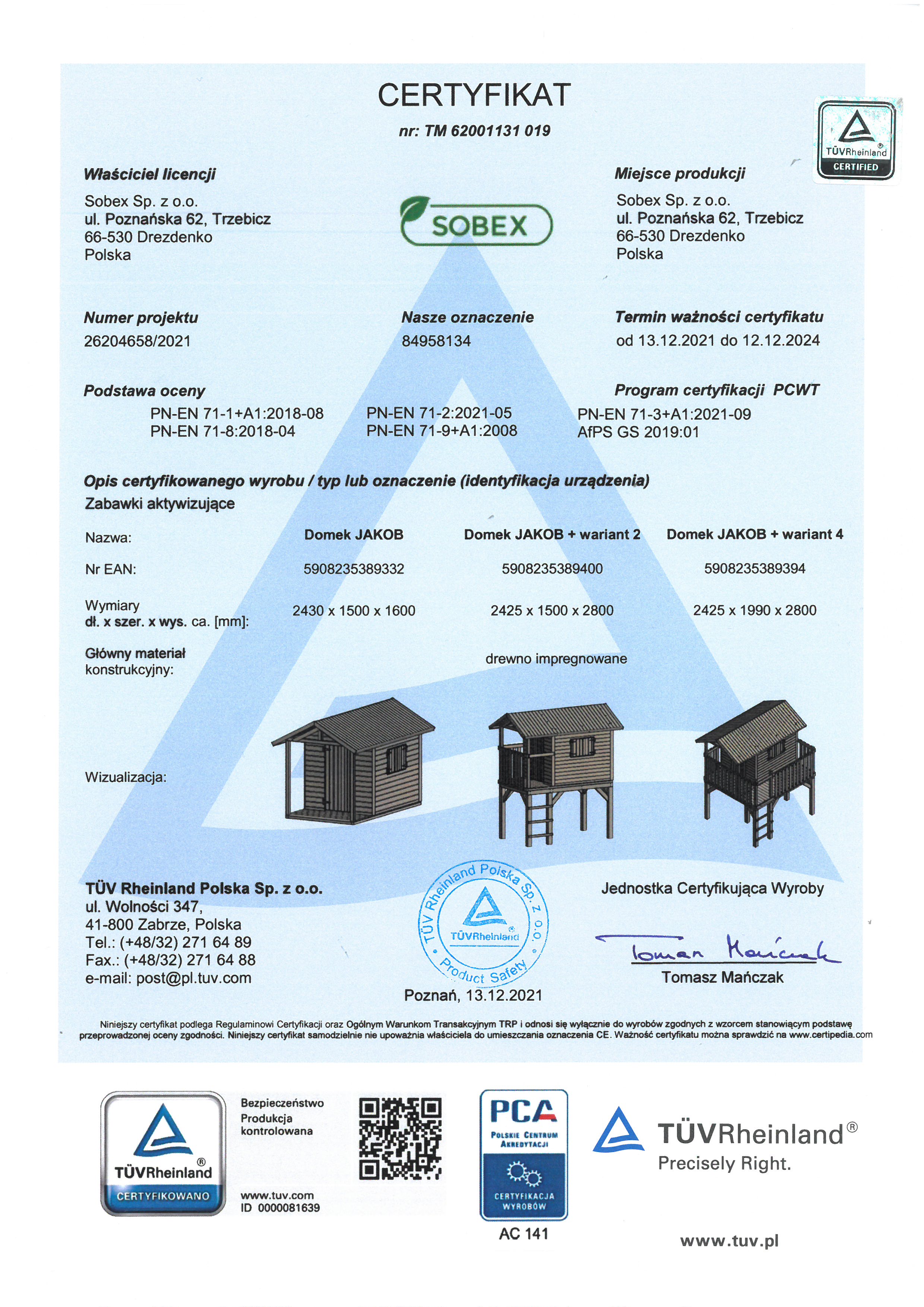 Domek Jakob pomoże dziecku wykreować własną przestrzeń, do której tylko ono miałoby dostęp i w której tworzyłoby swój własny świat. Może stać się miejscem zabaw i kryjówką, zamkiem dla księżniczki, bazą kosmiczną, statkiem lub innym wymarzonym przez dziecko miejscem. Wszystko zależy od nieograniczonej wyobraźni malucha.